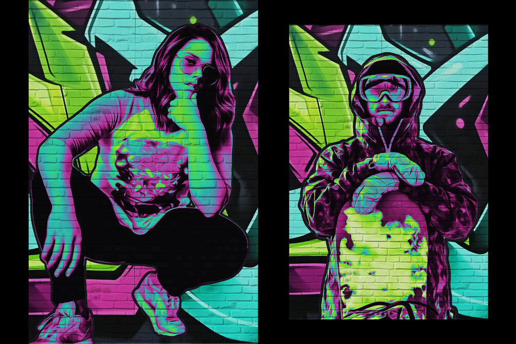 Bring the rebellious spirit of the streets to your images with the Graffiti Art Photo Effect. This template effortlessly transforms any photo into vibrant graffiti art, splashed across a brick wall like the work of a street artist. It’s perfect for adding an urban, edgy feel to your designs, allowing you to merge the worlds of digital photography and street art into one dynamic masterpiece. From portraits to landscapes, every image gains a bold, artistic statement with just a few clicks.